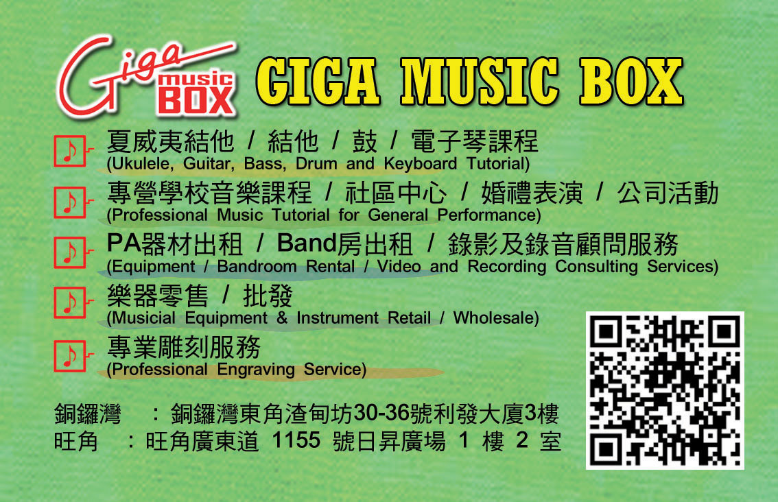 | Tags: band房, 夾band房, 九龍灣 band房, bandroom, 分租, 租用PA, 租用音響, 舞台, 專業, 錄音, 錄影, 音樂課程, 教guitar, 教bass, 教鼓, 教keyboard, mixing, bandroom book, music production, recording, vocal recording, band recording, guitar recording, place rental, giga band房, 旺角 band房, giga 鼓房, giga band show, guitar譜, 琴譜, 地下樂隊 band房, http://gigamusicbox.com, giga music, 修理guitar, Ukulele, 夏威夷結他, 小結他,烏克麗麗, 烏克麗麗樂句, ukulele tab, 小魔王關卡, 烏克麗麗教學, 烏克麗麗譜,ukulele指法表, Ukulele 小結他, Soprano傳統小結他, Concert中型小結他, Tenor大型小結他, Soprano, Concert, Tenor |